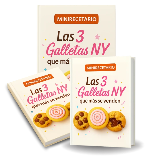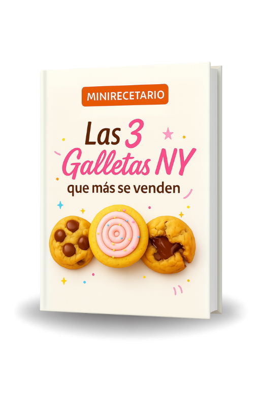 Esta guía te regala 3 galletas estilo NY que se ven brutales, son fácilde de preparar y ya se están vendiendo en otros emprendimientos de reposteras como tú.